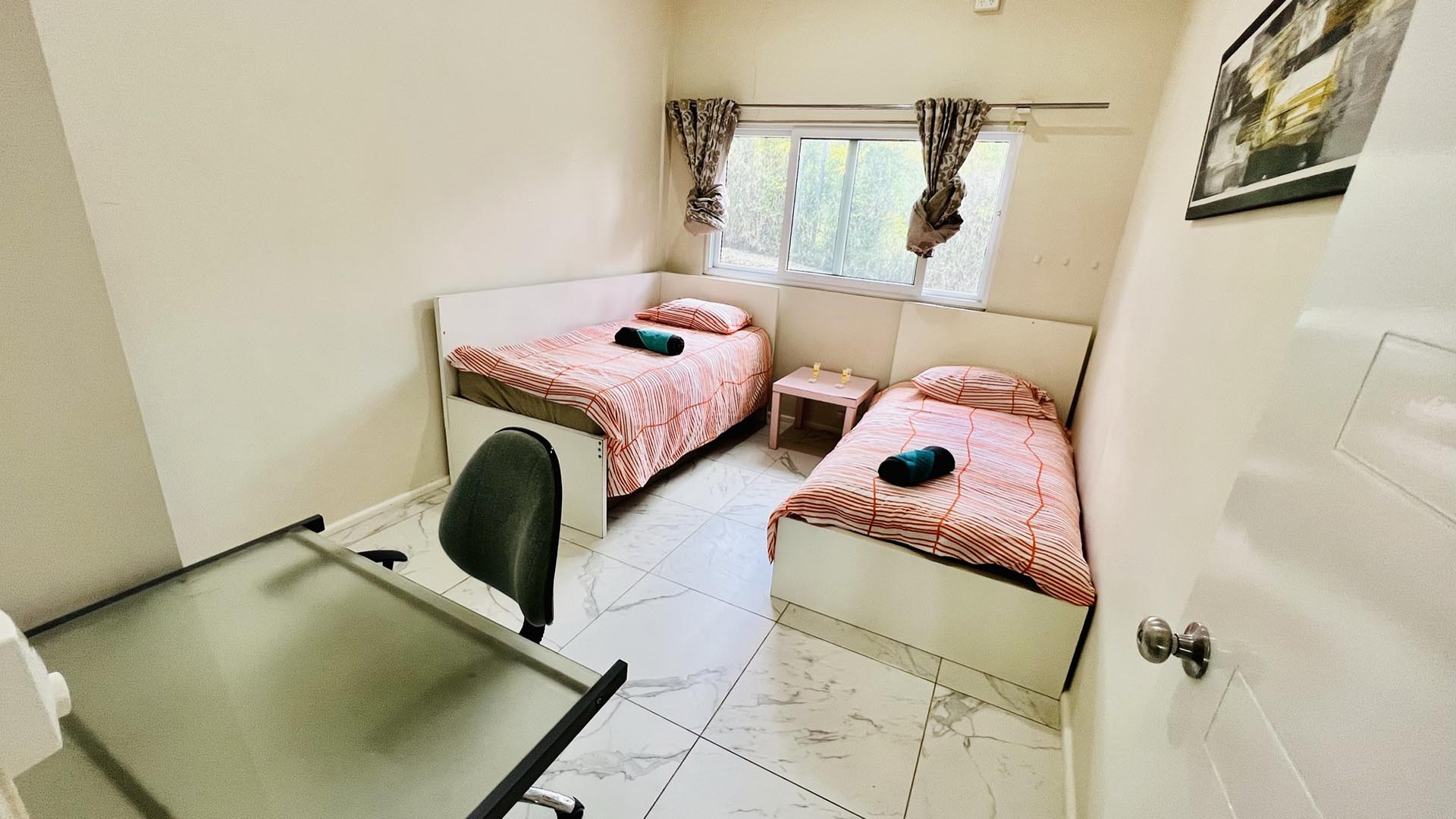 - 2 single beds